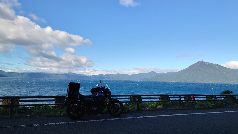 ![]() まあでも支笏湖はそのルートでも見れました。 逆光でバイクが影になっていますが、いい雰囲気。 |