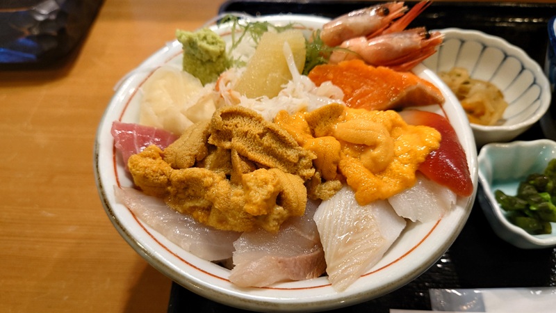 ![]() 「新生」という店でウニ増量の7色丼。赤ウニ白ウニ両方はいってます。 まあ、アレですね、いい仕事がしてあるとか関係なしに、素材で殴ってくる感じですね…。 |