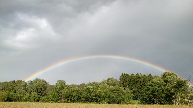 ![]() この日、宿である天塩川温泉に着く直前に雨に追いつかれました。 ちょっとだけ濡れたのですが(雨具を着るほどではなかった)、綺麗なダブルレインボーを見られました。 画像だとわかりにくいんですが、虹の外側に薄くもう一つ虹がかかっています。色が内側とは逆転していますね。 |