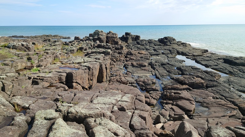 ![]() ウスタイベ千畳岩という見事な柱状節理を見学。 |