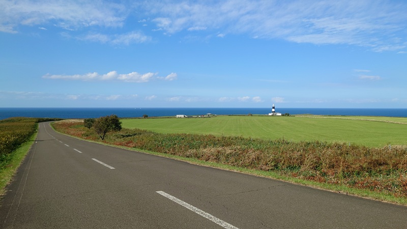 ![]() そのまま網走方面に進んで、能取岬。 ここもなかなかの絶景ポイント。 地面の色、空の青、海の青、牧場、そして灯台。 |