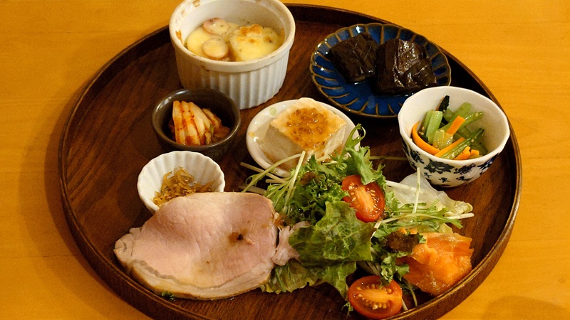 ![]() 宿の夕食、の、オードブル部分。豪華でオシャレ。 |